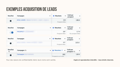 Projeter tes résultats : ton nombre de leads, ton coût d'acquisition, ta transfo.